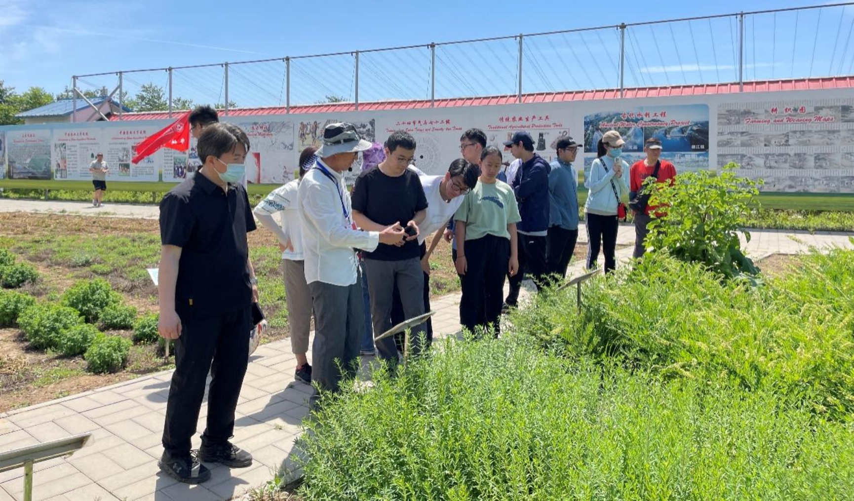 随后,中国农大农学院上庄党支部党员张旭老师带领下大家开展了农业植物认知活动,学习了不同农作物的种植径路、株距、播种深度等知识。张旭老师详细讲解了大刍草、棉花、鸢尾、高粱、大豆、秋葵等禾本科、百合科、菊科、豆科等不同农业植物,重点介绍了粮食作物、经济作物以及药用作物的生长特性和食用药用价值,极其相关资源的现状。